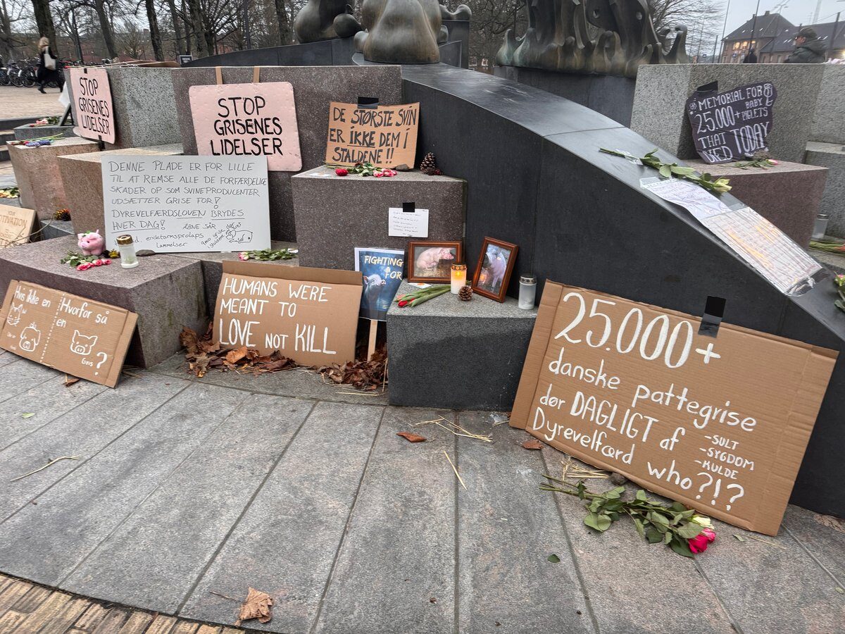 I Odense oplevede vi for nylig en demonstration på den centrale plads ved banegården. Demonstrationen bestod af skilte med tekster som ”25.000 grise dør dagligt af sult, sygdom og kulde”. Meget enkelt og inspirerende. Vær ikke overrasket, hvis vi gør noget tilsvarende, her i Kanalens Kvarter 32.